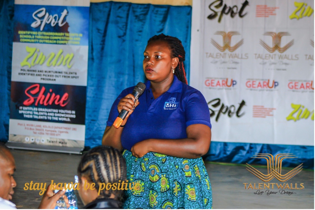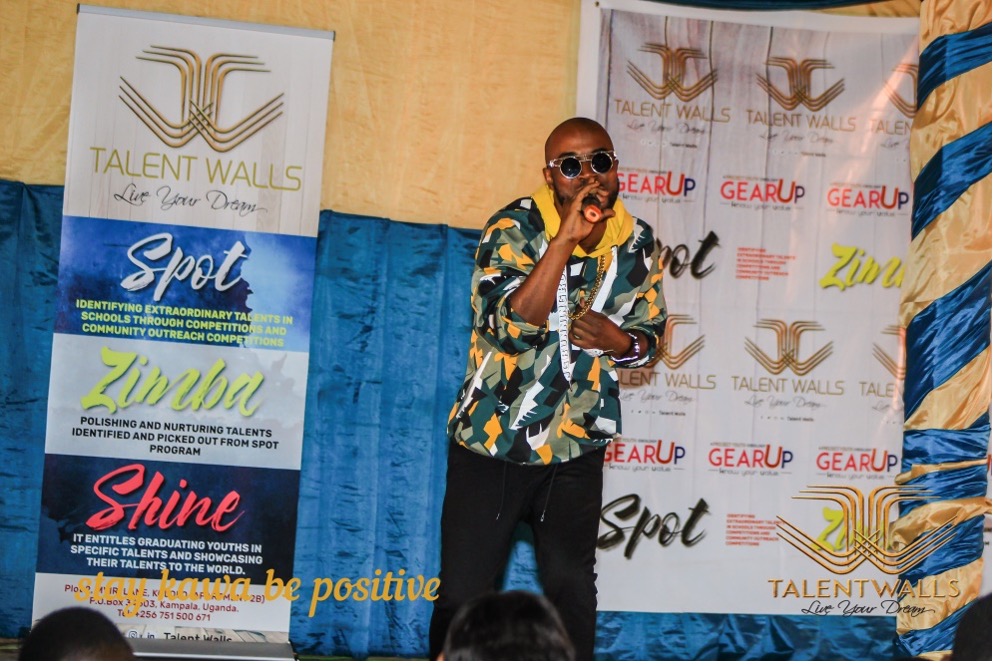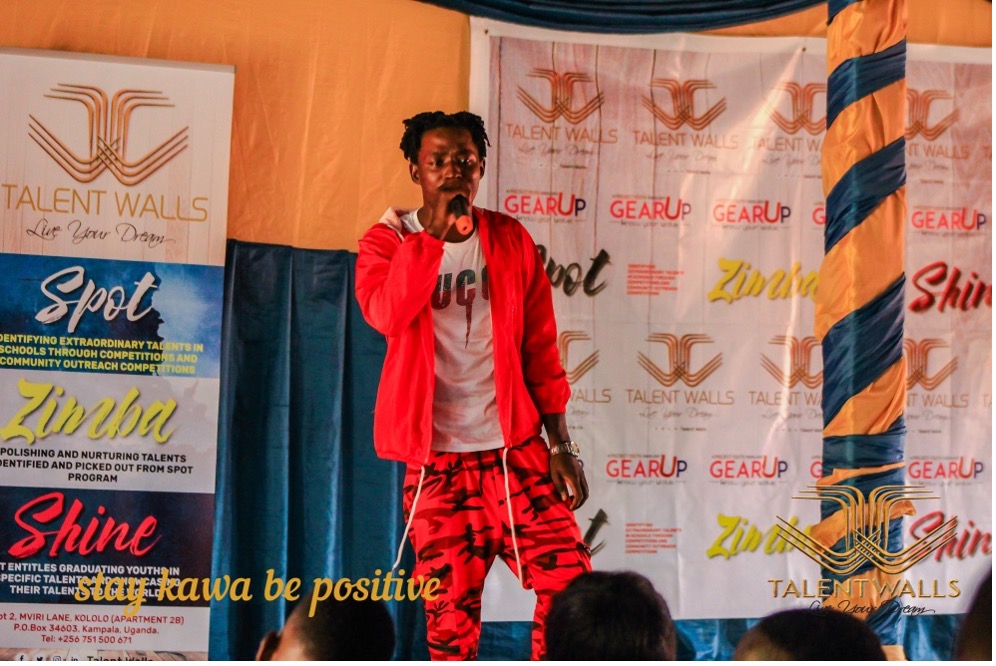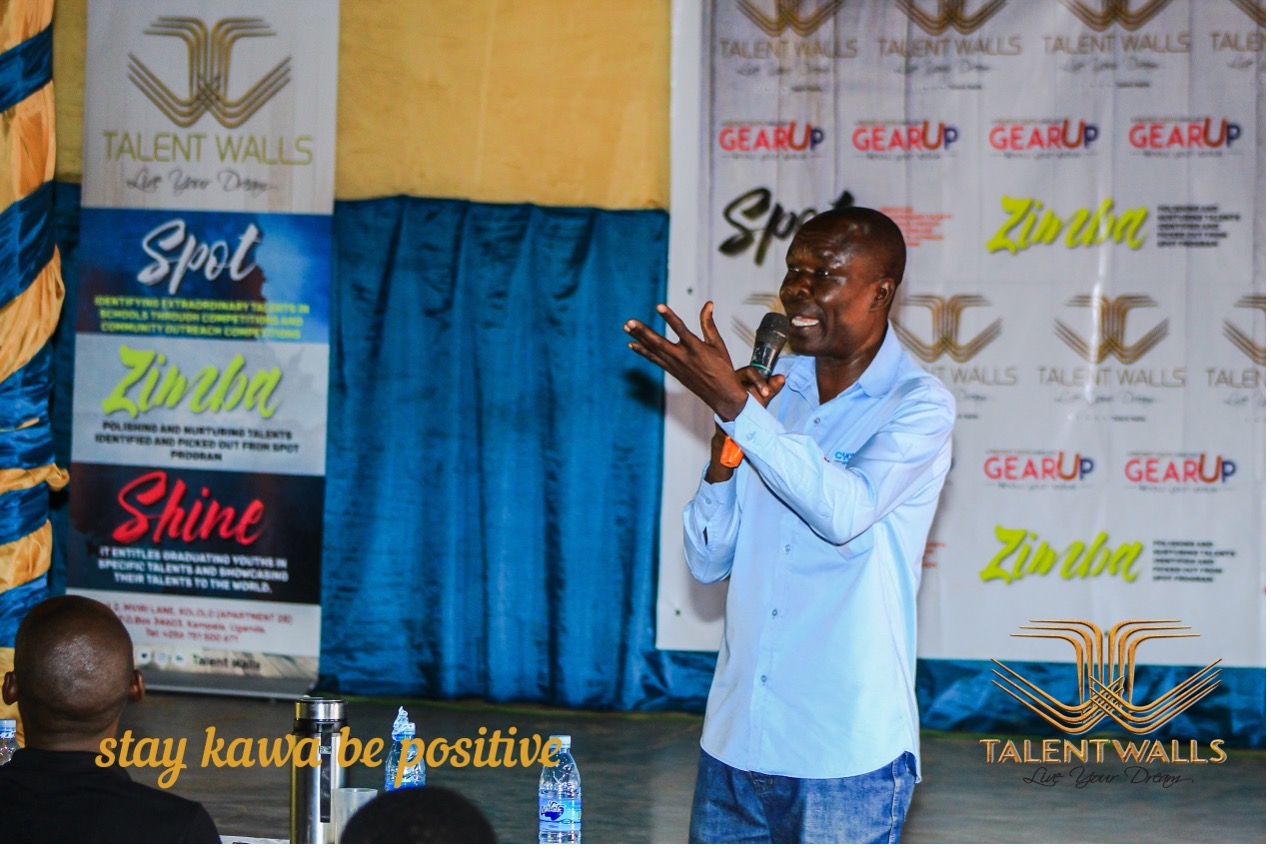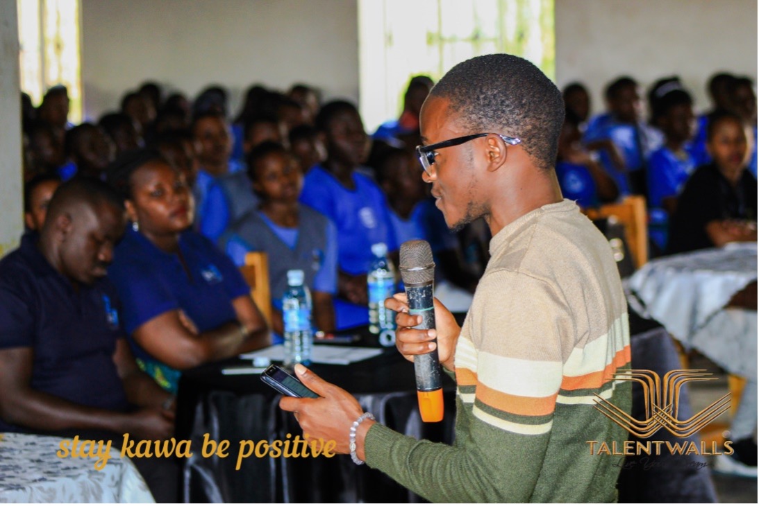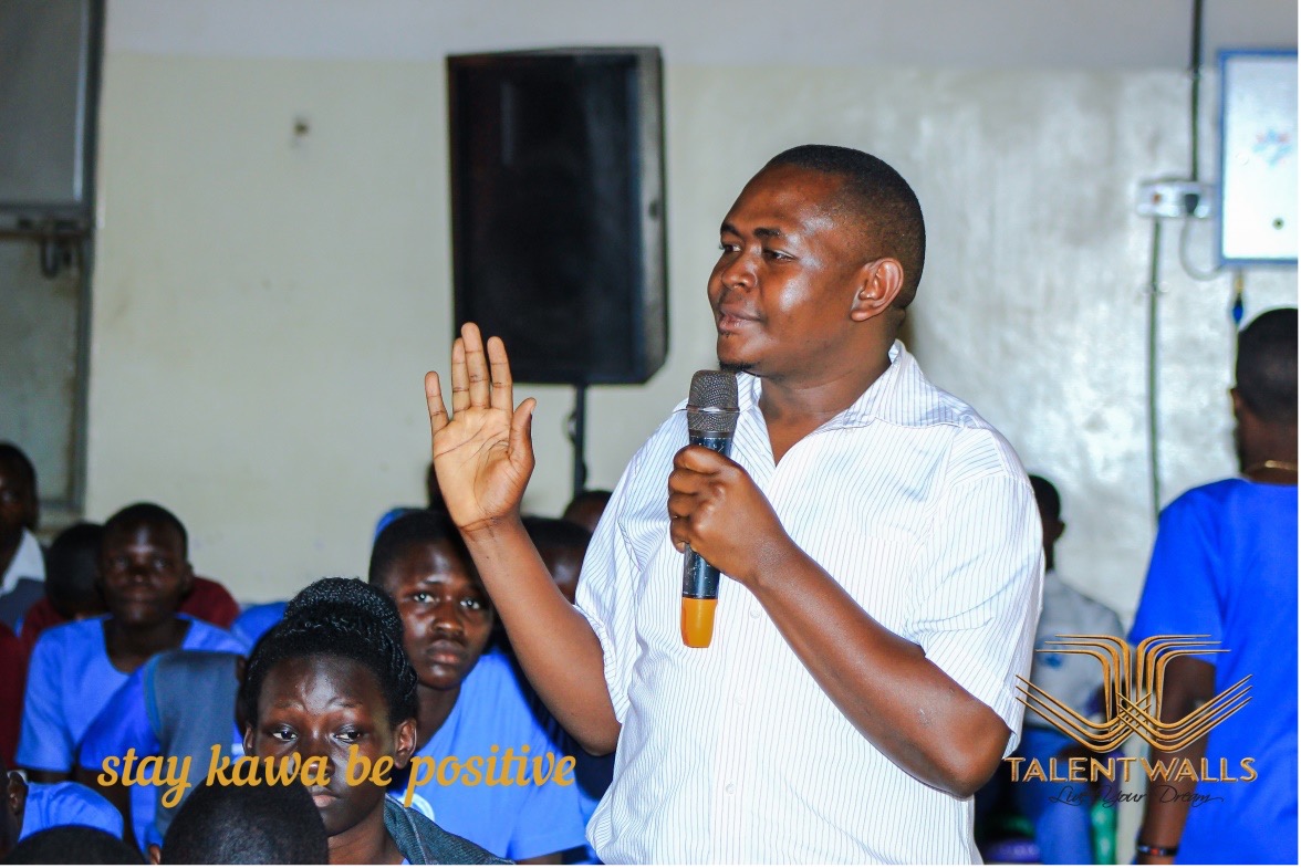 Mr. Mbaziira Brian from talent walls talked about talent walls, its mission, vision, programs and how they run. He as well informed them about the stay kawa be positive campaign and its purpose. He introduced the talent walls team and mentioned the fact that all of them have talents where by one of them was asked to showcase it for the students to further understand it practically.. He asked some students to join him on stage so as to illustrate the programs that talent walls runs. He said that people with talents should always be active whenever they get such opportunities and emphasized discipline since success of one’s talent moves in hand with discipline.